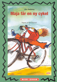 Maja har fået en rød cykel. Den er rød og har tre gear. Mads lærer hende at stå af og på. Men hvordan står man af, når man kører ned ad bakke?