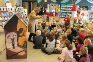 Se den flotte reol. Den er illustreret af Oliver Streich efter forsiden af Roger & Åge. Den anden gavl en anden forside. Selv er jeg her i gang som Åge him selv. Roger & Åges detektivskole underviser børn og unge mennesker i den svære disiplin detektivfaget.